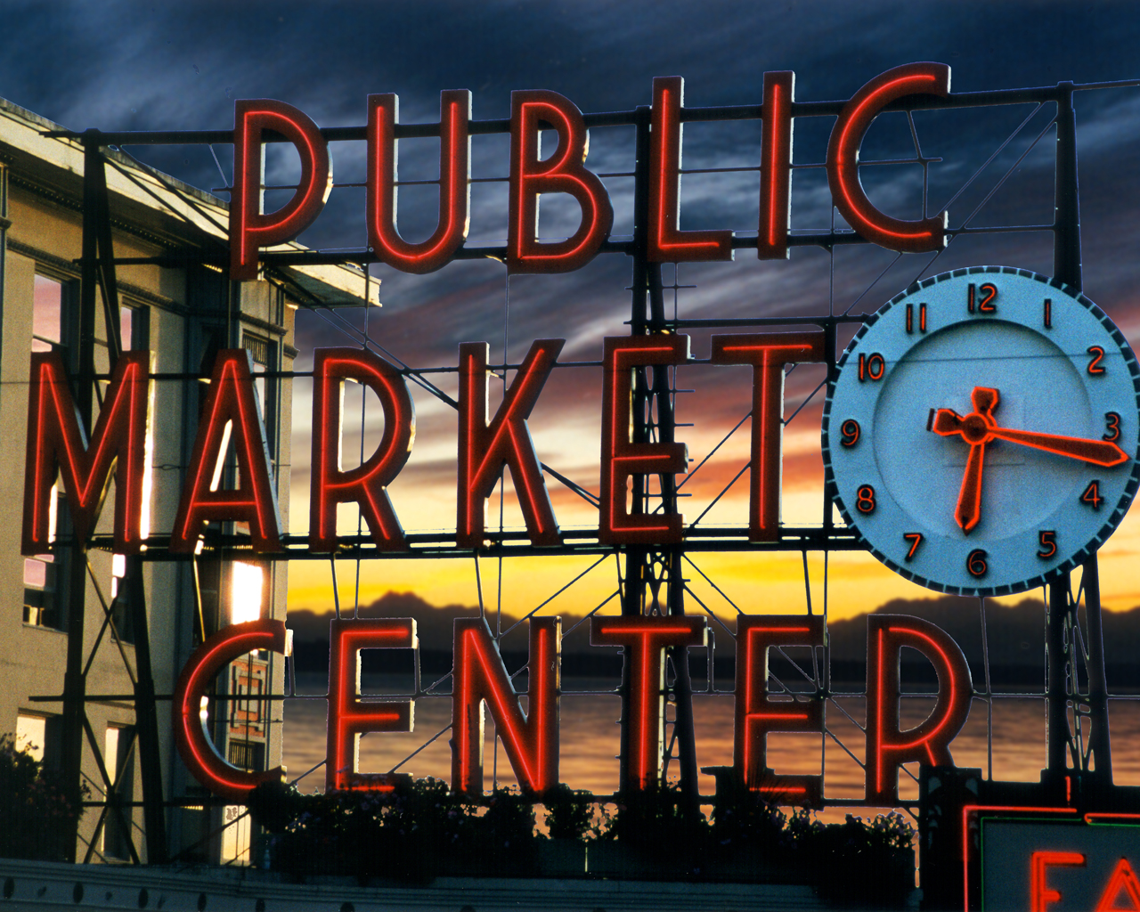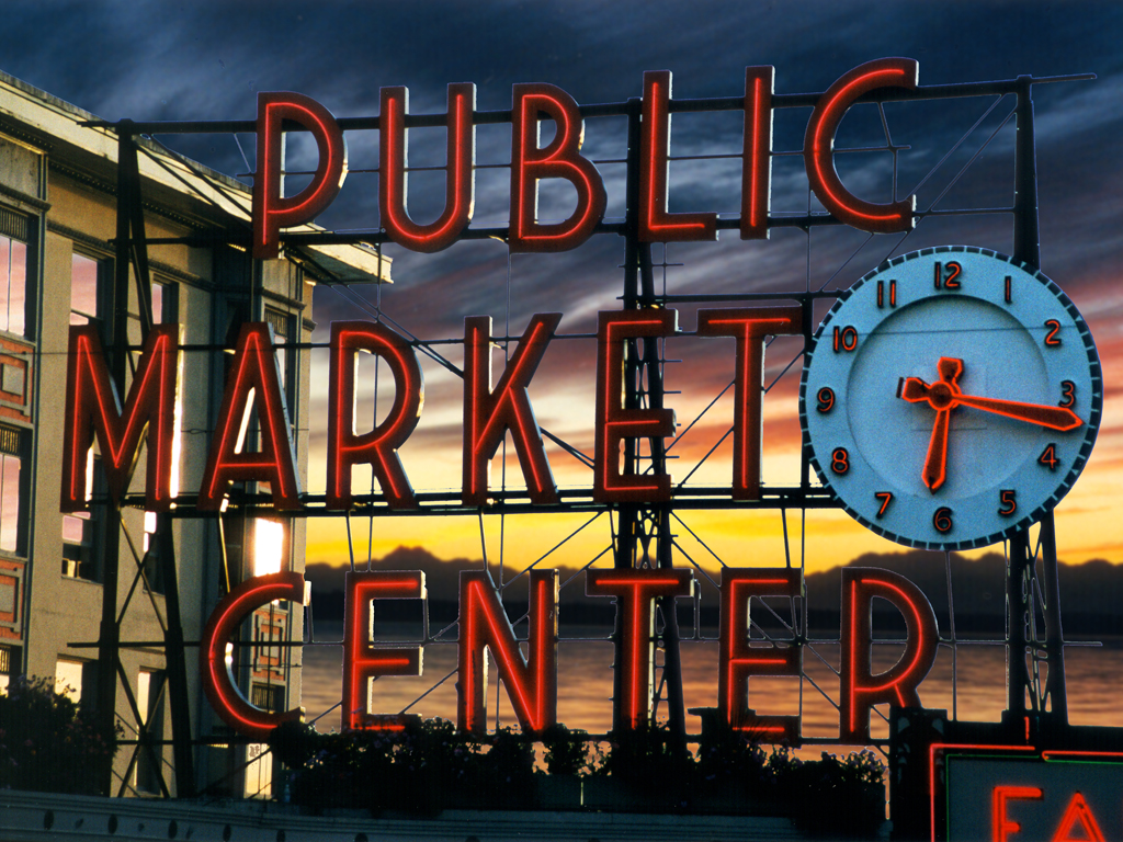 Seattle’s Pike Place Market at sunset.